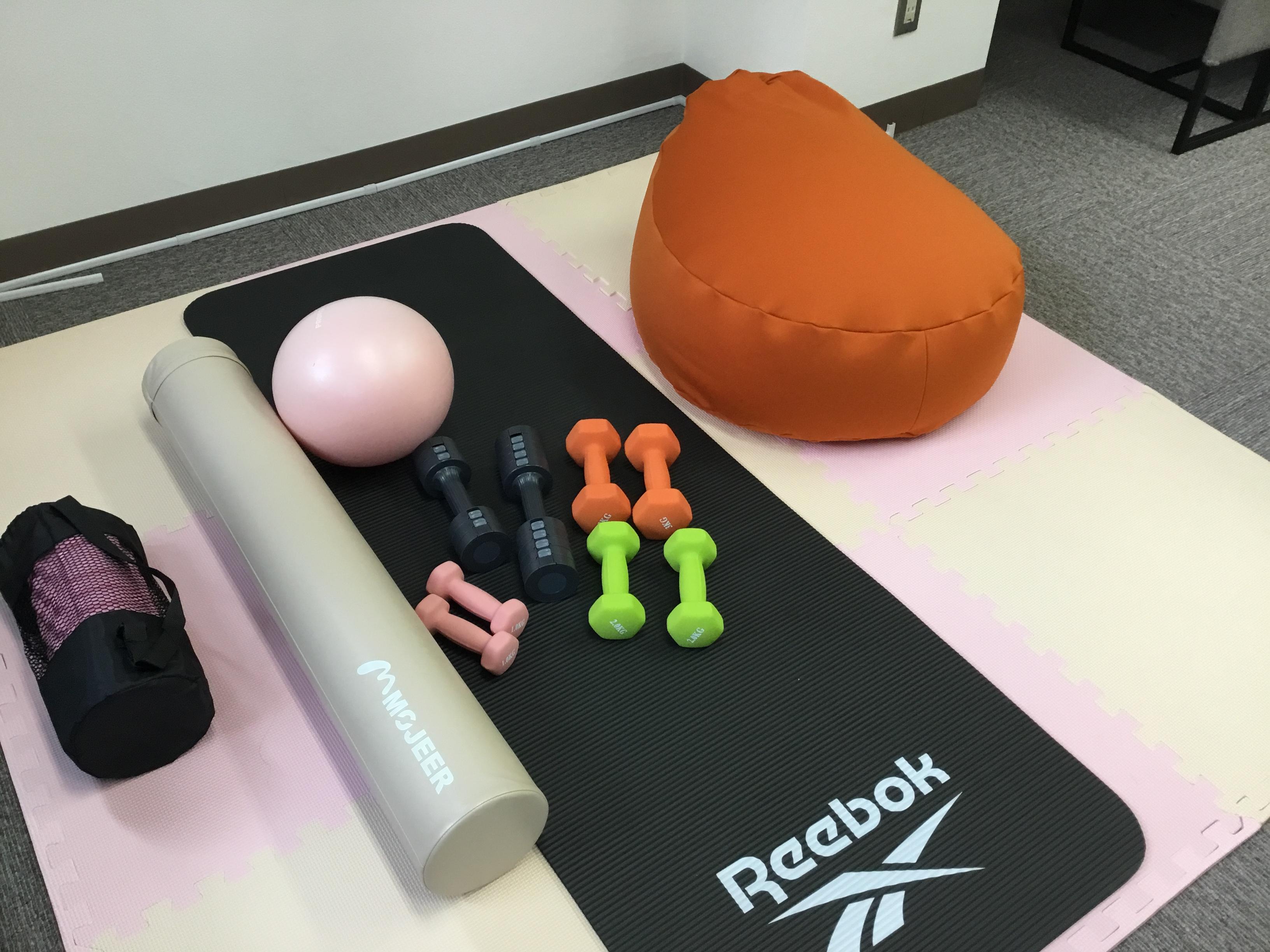 ストレッチから本格的な運動まで対応でき、体力づくりやリフレッシュに活用できる器具を揃えています。