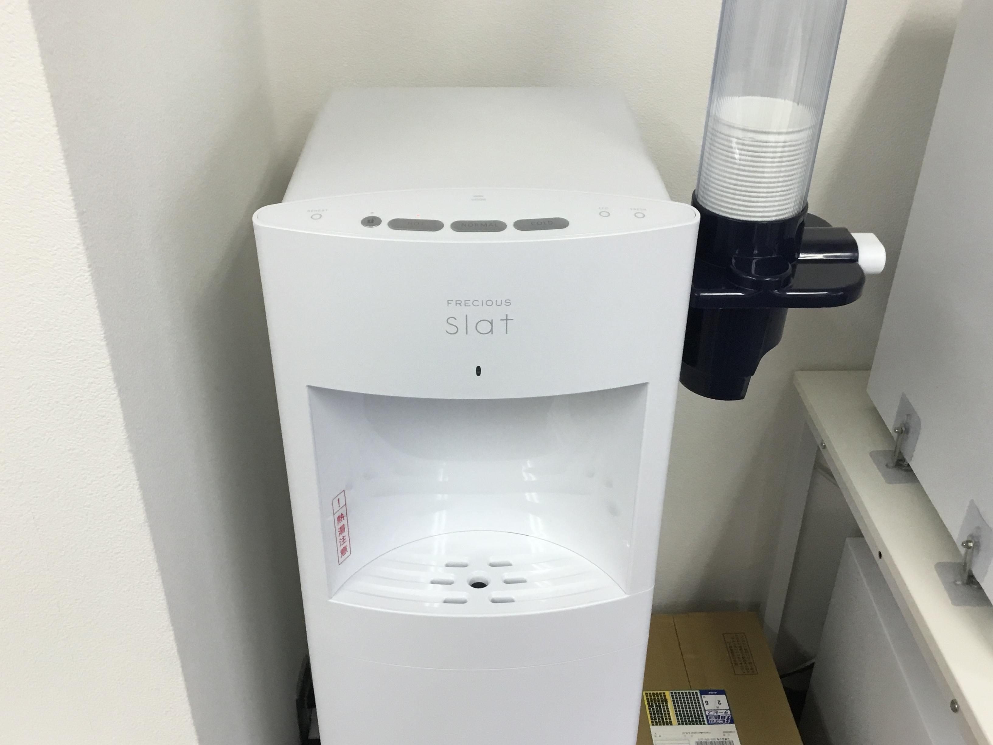 お湯・常温・冷水が使えるウォーターサーバーを設置し、コーヒーや紅茶も自由に飲めます。