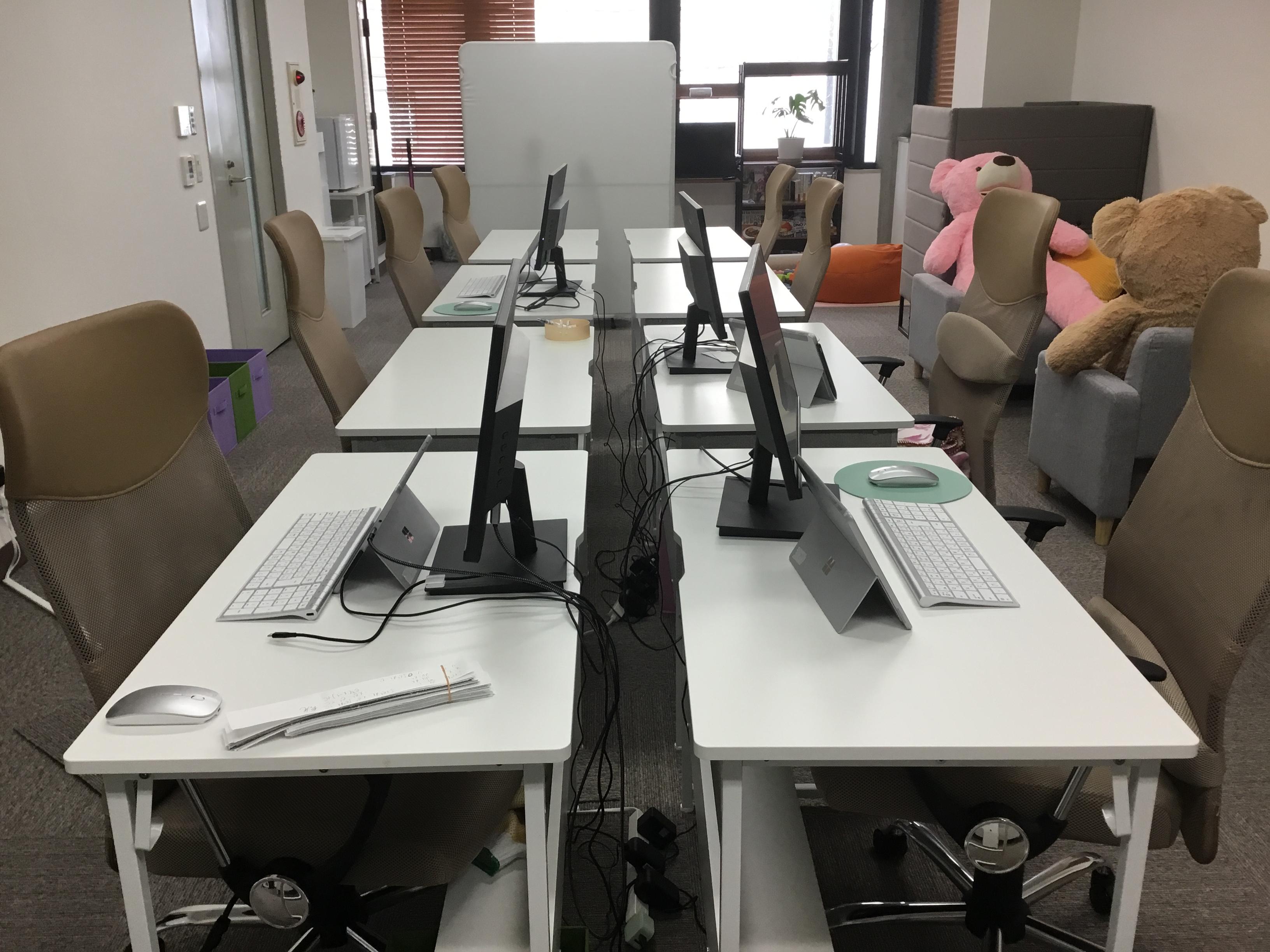 一人ひとりに専用デスクを割り当てており、周囲を気にせず自分のペースで集中して業務に取り組める作業環境です。